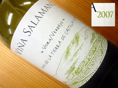 ヴィーニャ・サラマンカ・ブランコ・(ビウラ&ヴェルデホ)[2007]年・ボデガス・バルデアギラ元詰VINA SALAMANCA Blauco Viura&Verdejo [2007] Bodegas Valdeaguila Vino de Tierra de Castilla Y Leonスペインファン大注目!スペイン最高ワイン評価誌「ペニン誌2008年版」で全てのワインが5つ星最高評価獲得!雑誌「一個人」“2008年至福の極旨ワインBEST200”ワイン特集でも赤白ともに入選!このワインで「新星ワイナリーが挑む、味わいのハーモニー」として第3位獲得!グレープフルーツやレモン等の柑橘系の香りに青リンゴやパイナップルのような甘みのある香り!白い花やハーブも感じられる。酸もあり厚みのある果実感タップリの辛口ワインが少量入荷!ヴィーニャ サラマンカ ブランコ (ビウラ&ヴェルデホ)[2007]年 ボデガス バルデアギラ元詰 スペインワイン誌ペニンで 掲載掲載全てのアイテムが なんと5ツ星★★★★★獲得! 雑誌『一個人』ワイン特集お見事!赤・白ともに入選! 「新星ワイナリーが挑む、味わいのハーモニー」と絶賛! スペインのカスティーリャ・レオン州の西部、サラマンカにある造り手で2000年に設立された新しい生産者です。サラマンカのGarcibueyと言う村に約60ヘクタールの畑を所有し、その畑はいくつかの小さな区画によって構成されています。この地区の原産の品種であるルフェッテにいたっては、樹齢70年以上の古木で、他にはテンプラニーリョやガルナッチャ、白ワイン用にヴェルデホやペドロ・ヒメネスなどを植えています。 まだ新しい造り手ながら、すでにワイン誌ペニンでは高い評価を受けており、今後注目される生産者となっています。 ▼ 評価 スペインワイン評価本ペニン2008においてパーフェクト!掲載アイテム全てで5ツ星★★★★★! BlancoVina Salamanca 2006 5ツ星★★★★★! Vina Salamanca Tinto 2005 5ツ星★★★★★! Vina Salamanca Tinto 20065ツ星★★★★★! ヴィノ・デ・ラ・ティエッラで最高の評価! ヴィーニャ・サラマンカ・ブランコ ■ ブドウ品種:ヴェルデホ、ビウラ(マカベオ)、パロミノ・フィーノ 少し緑がかったイエローで、フレッシュグレープ・フルーツやレモン等の香りにほのかに青リンゴやパイナップルのような甘みのある香りも加わり、さらに白い花やハーブなどの香りが感じられます。 厚みのある果実感でしっかりとしており、酸がしっかりと感じられ、果実感とのバランスがいいです。スペインらしい白ワインといえ、このレベルはかなり好印象です。 ▼ 雑誌「一個人」のワイン特集『至福の極旨ワイン BEST200』に入賞! 新星ワイナリーが挑む、 味わいのハーモニー バルデアギラは2000年に設立された新しいワイナリー。スペインのワインガイドブック、ペニン誌で5ツ星の評価を受けている。 「ほどよいボリューム感と豊かな果実味、酸味も適度でバランスがいい。フルーティで飲みやすい。エビグラタン、エビフライなどと合わせたい。」 スペインファン大注目!スペイン最高ワイン評価誌「ペニン誌2008年版」で全てのワインが5つ星最高評価獲得!雑誌「一個人」“2008年至福の極旨ワインBEST200”ワイン特集でも赤白ともに入選!このワインで「新星ワイナリーが挑む、味わいのハーモニー」として第3位獲得!グレープフルーツやレモン等の柑橘系の香りに青リンゴやパイナップルのような甘みのある香り!白い花やハーブも感じられる。酸もあり厚みのある果実感タップリの辛口ワインが少量入荷! 年代 造り手 [2007] ボデガス・バルデアギラ 生産国 地域 スペイン カスティーリャ・レオン州 村名 ヴィノ・デッラ・ティエッラ タイプ 白・辛口 内容量 750ml 【アペリティフ 】 【ヴィーニャ サラマンカ 】 【ボデガス バルデアギラ 】 【スペイン 白 辛口 】 【カスティーリャ レオン 】 【スペイン ブランコ 】 【ヴィウラ 】 【ビウラ 】 【ヴェルデホ 】【】